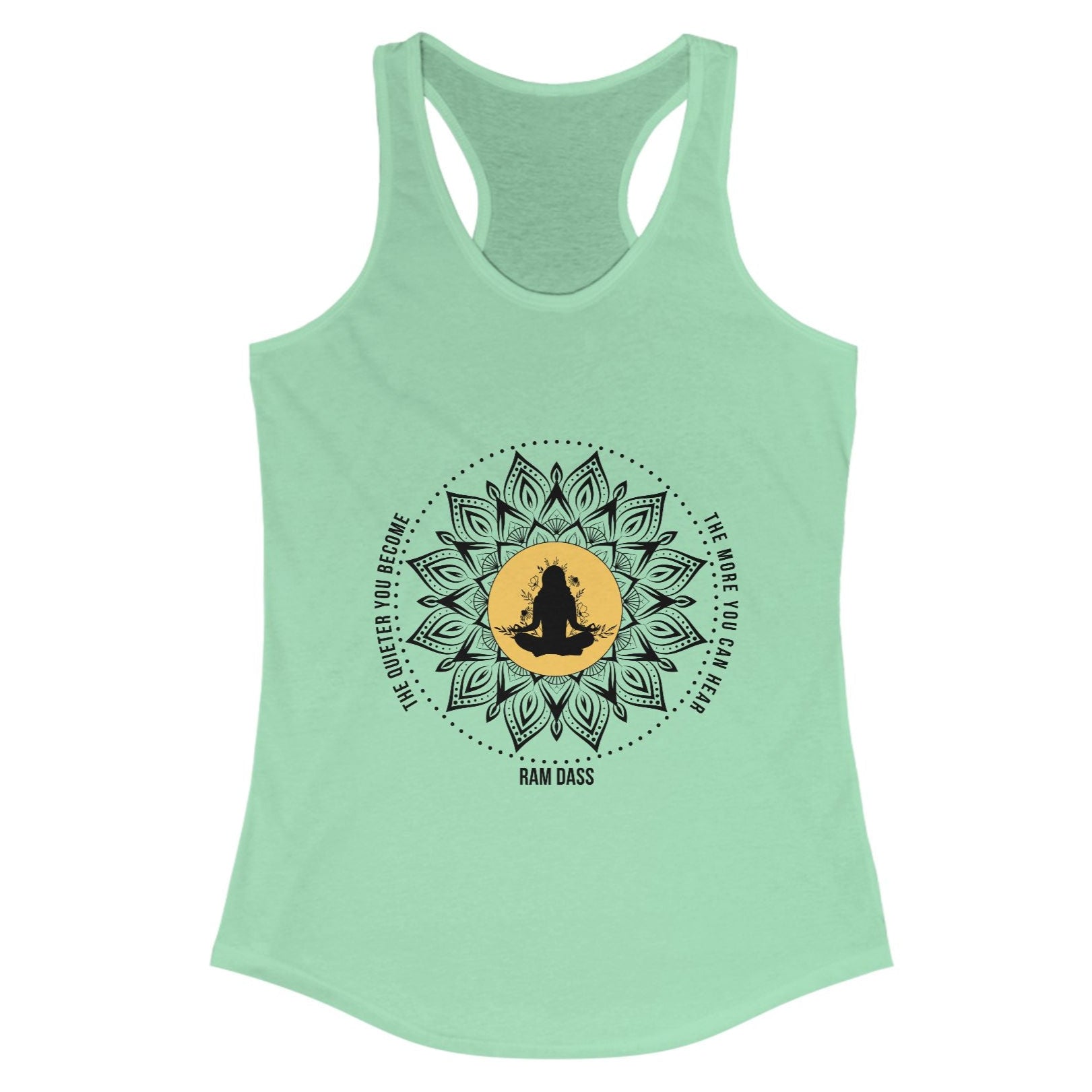 Step into your flow—on and off the mat—with our beautifully designed Inspired Expressions Yoga Tank, inspired by mindfulness and a powerful teaching by Ram Dass. Featuring a sacred mandala and a meditative silhouette, this racerback tank blends style, comfort, and soul. Designed from breathable cotton fabric, this tank is perfect for yoga, workouts, or simply embodying good vibes all day long. Whether you're meditating, moving, or manifesting, this piece keeps you aligned in both purpose and comfort by keeping the positivity flowing.